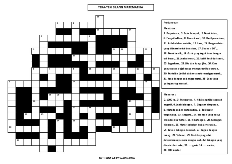Teka Teki Silang Matematika Smp Kelas 8 Madematika Otosection